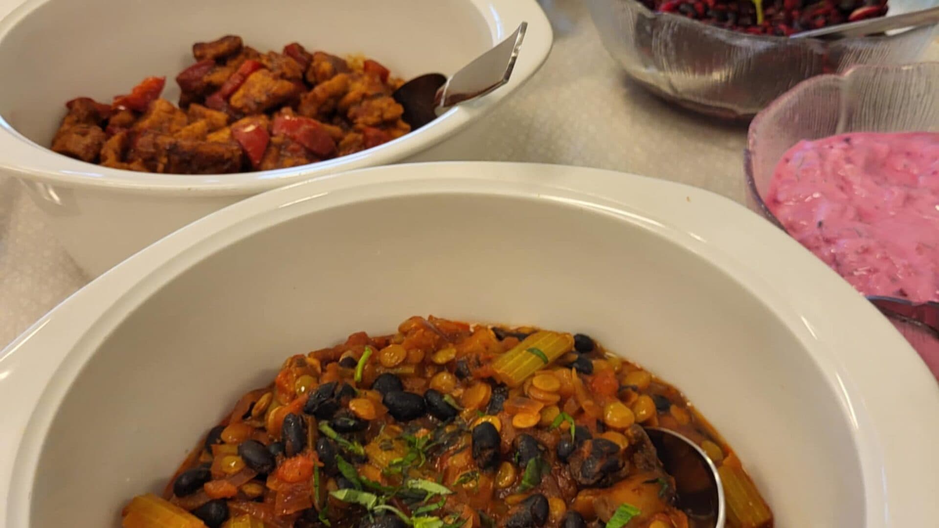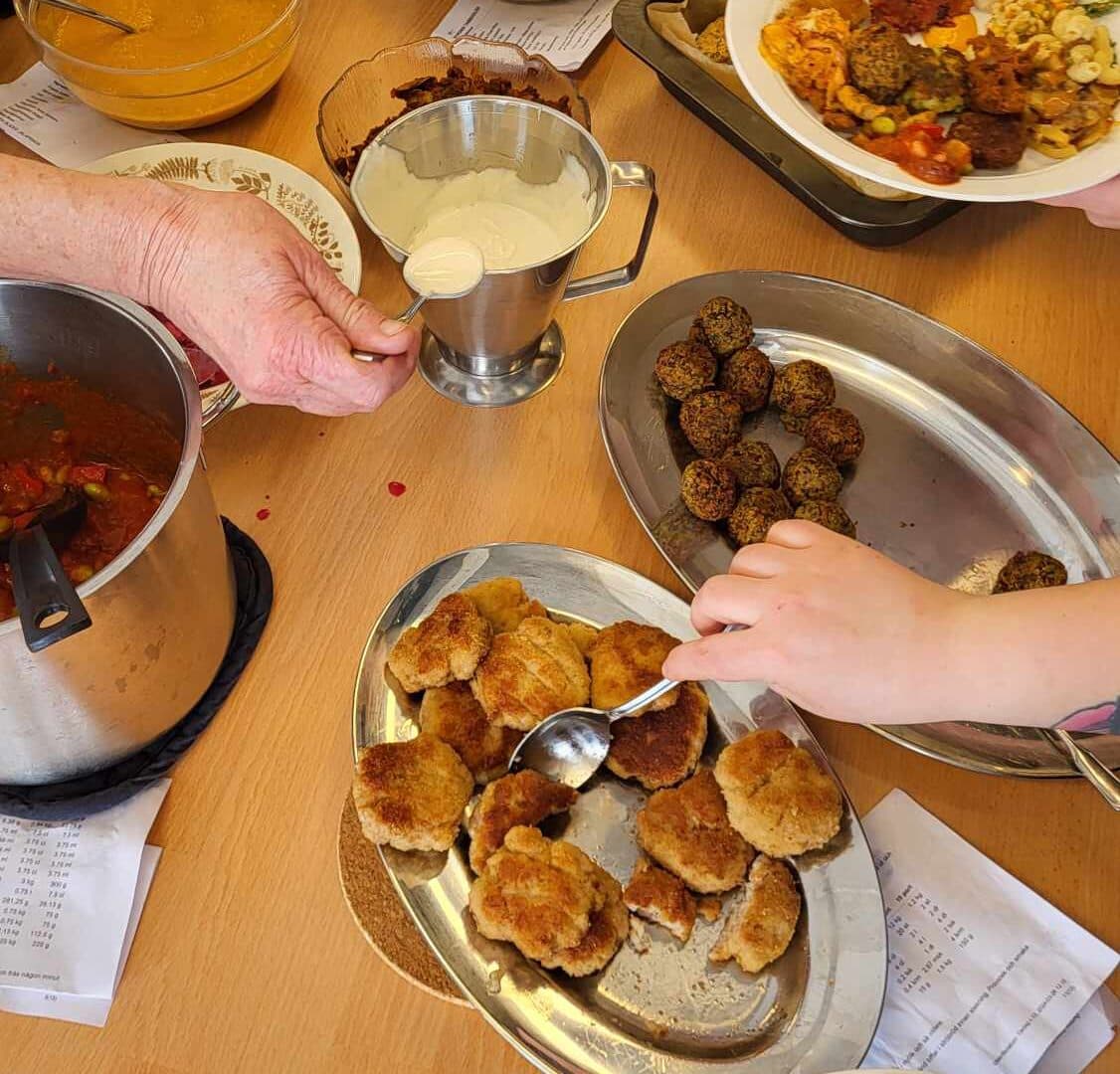 Vi lagade 24 olika recept med mest baljväxter och vi provsmakade också landodlad fisk.