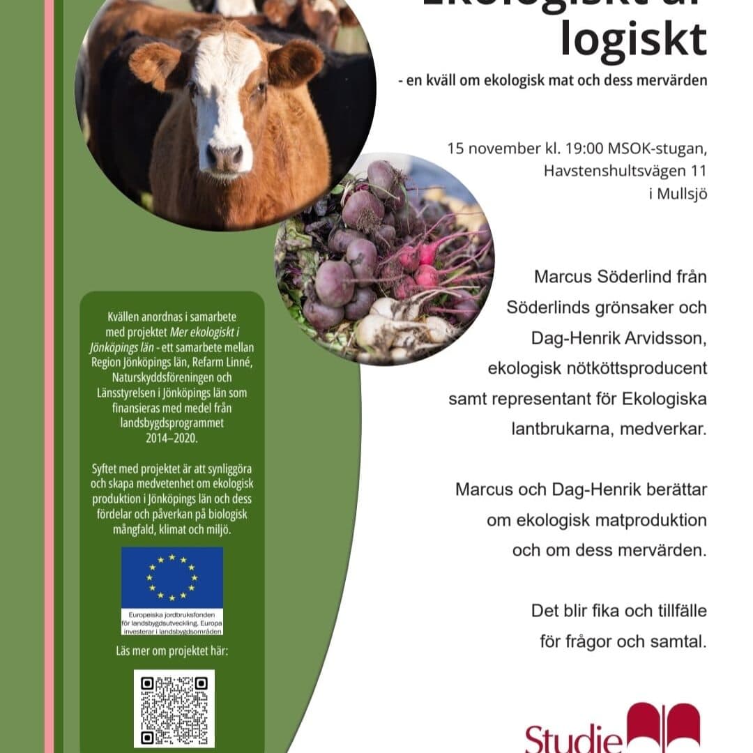 15 nov. Ekologiskt är logiskt – en föreläsning i samverkan med Naturskyddsföreningen Mullsjö och Studiefrämjande.