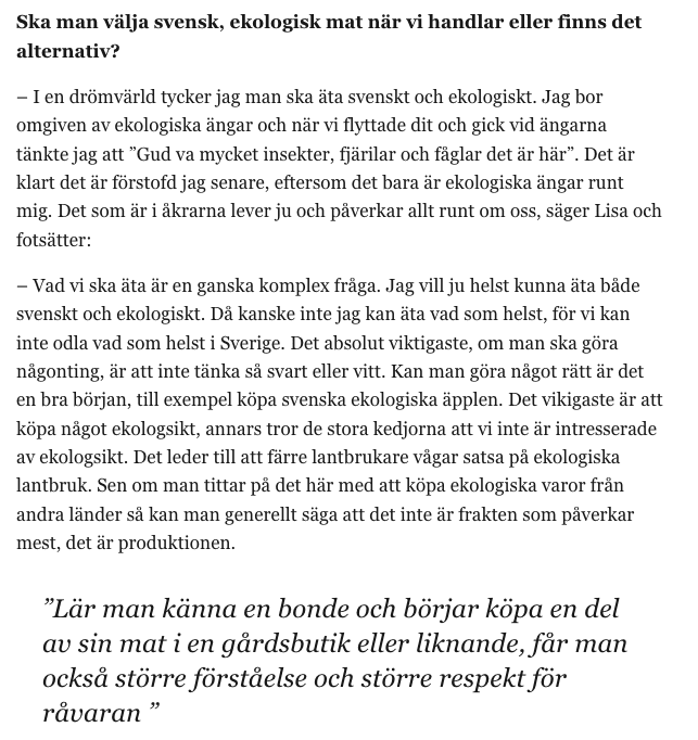 Artikel ”Nu ska fler äta svenskt och ekologiskt” i tidningen Nära dig, sid 32 och 33.
