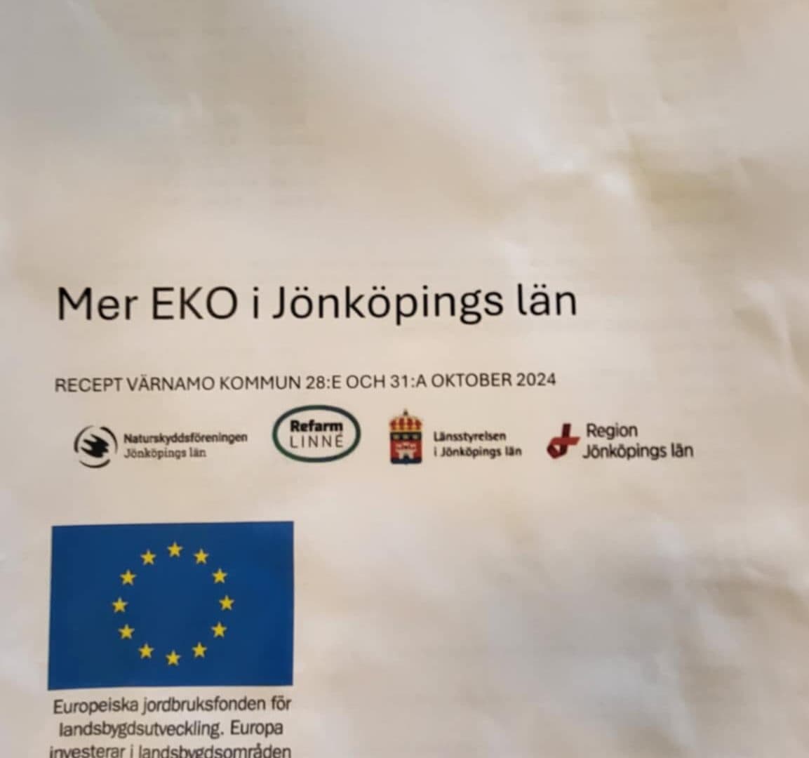 Region Jönköpings län har beviljats bidrag för ett projekt, ”Mer ekologiskt i Jönköpings län” för att synliggöra ekologisk matproduktion i regionen. Samarbetspartner i projektet är Länsstyrelsen i Jönköpings län, Föreningen Refarm Linné och Naturskyddsföreningen Jönköpings länsförbund. Vi fyller löpande på med information vartefter planeringen fortskrider.